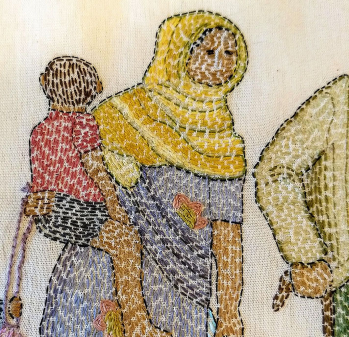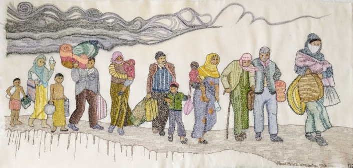 On this video podcast episode, Penny Peters describes to Gail Harker how she became involved in the community project: “25 Million Stitches”. Penny talks about the plight of the refugees and how she designed and stitched the panel from beginning to end showing their journey. Watching this video will help you to understand and develop insight into how an embroidery artist approaches a project.