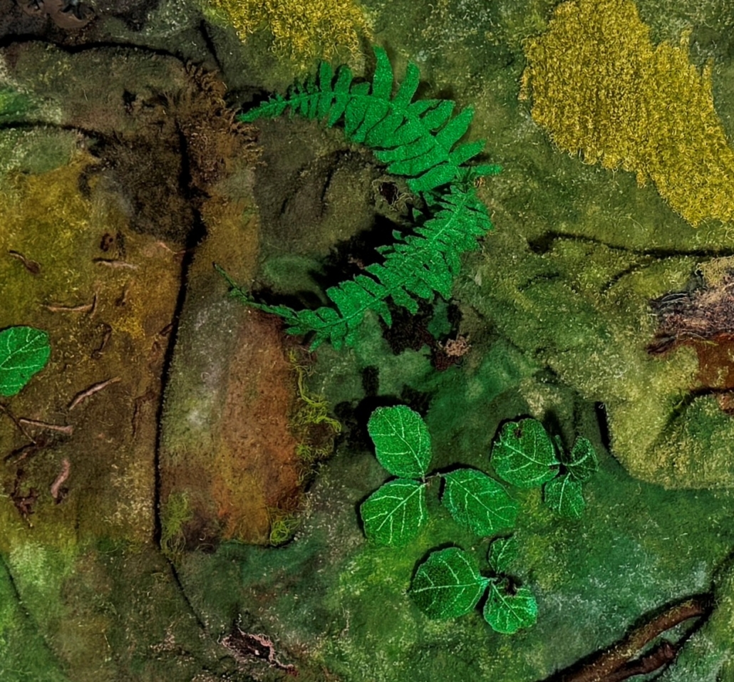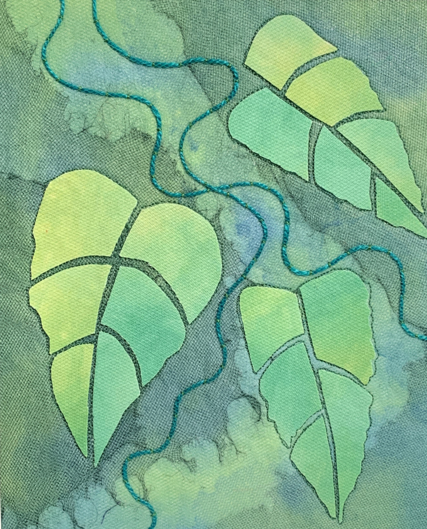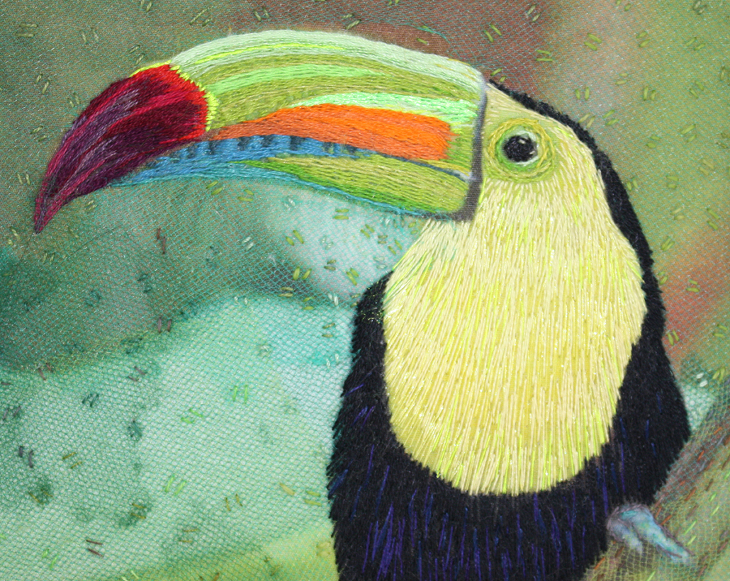 Prior to this course, the artists completed a Research for Art and Design course of study where they chose and explored an inspirational theme using various media. The themes they explored on paper formed the basis for the work exhibited here. This course builds on their skills to develop more highly advanced original embroidery and design supported by experimentation and a thorough knowledge of materials, techniques, and processes. Their aim is the development of independence in working and individual styles.k